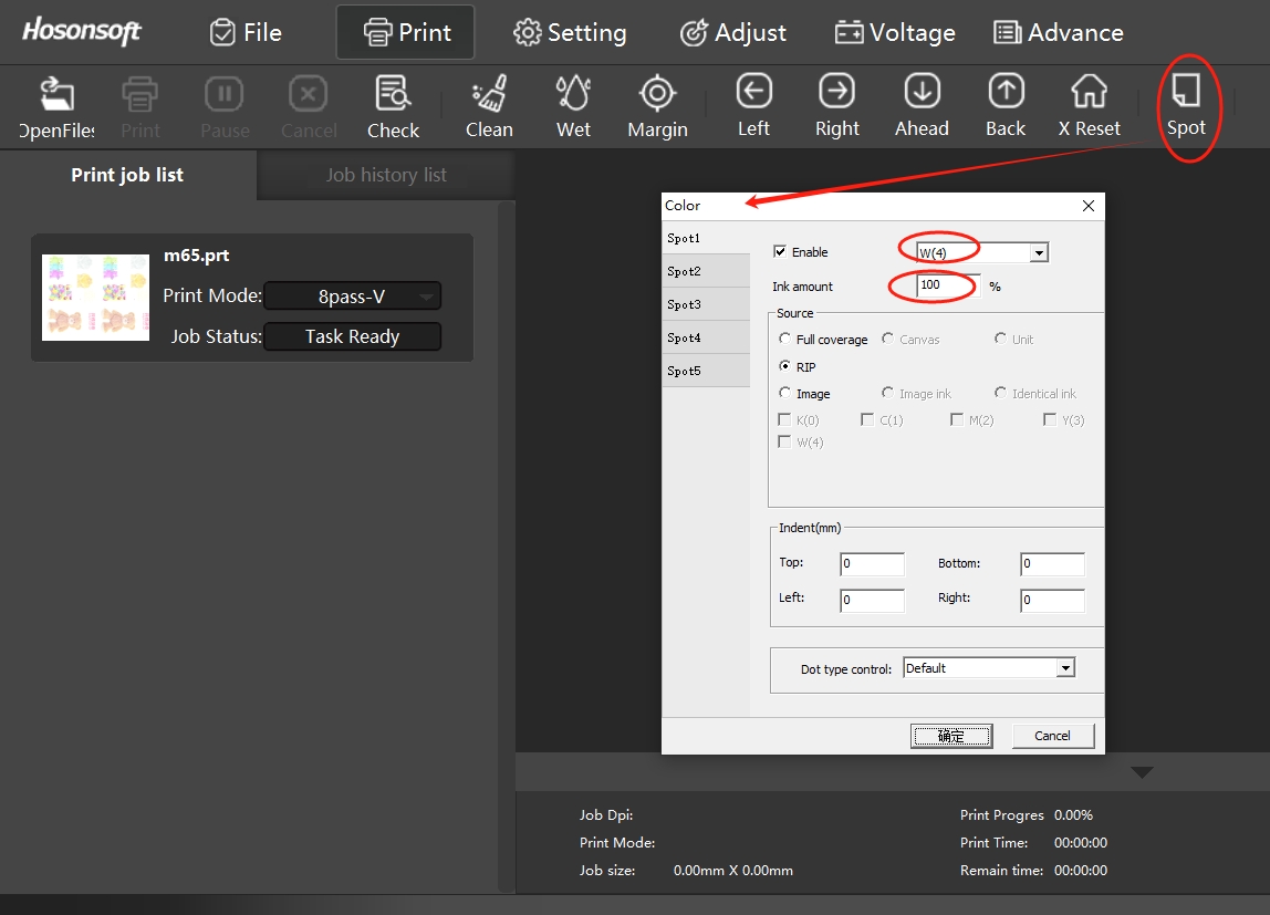 STEP 2:Check if there is a "Spot" menu in the printing software and