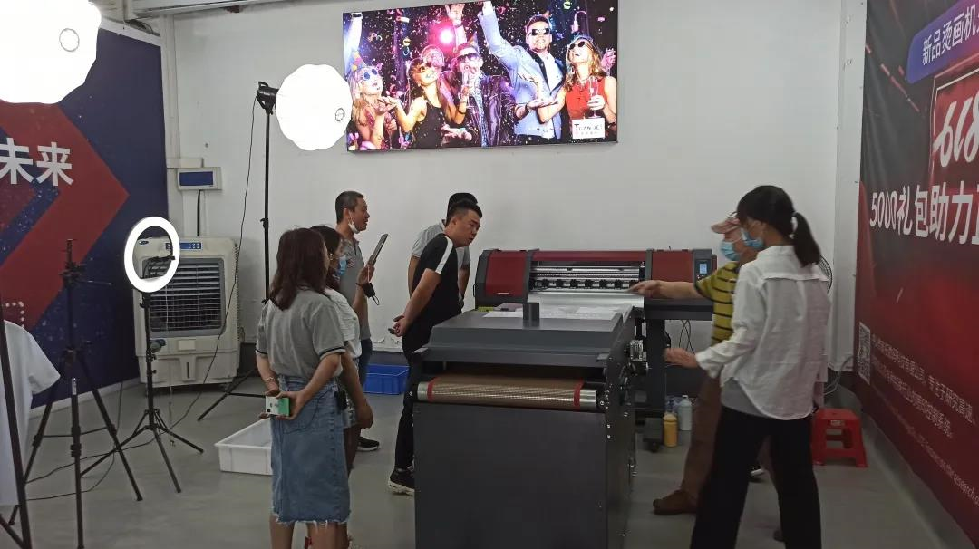 在直播中,為粉絲們展現(xiàn)了柯式燙畫(huà)抖粉機(jī)的工藝流程和應(yīng)用,以及機(jī)器設(shè)備的特性。