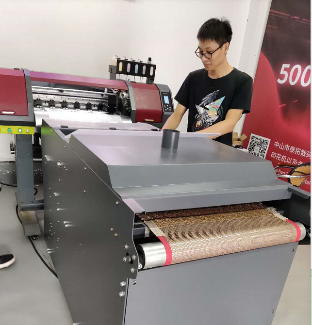 泰拓?cái)?shù)碼的柯式燙畫(huà),只需投資一套燙畫(huà)打印機(jī)和抖粉機(jī),基本一次投資到位,占地面積不足一個(gè)車(chē)位大小,且是一站式鏤空打印和自動(dòng)抖粉,出來(lái)即是燙畫(huà)成品,效率很高。